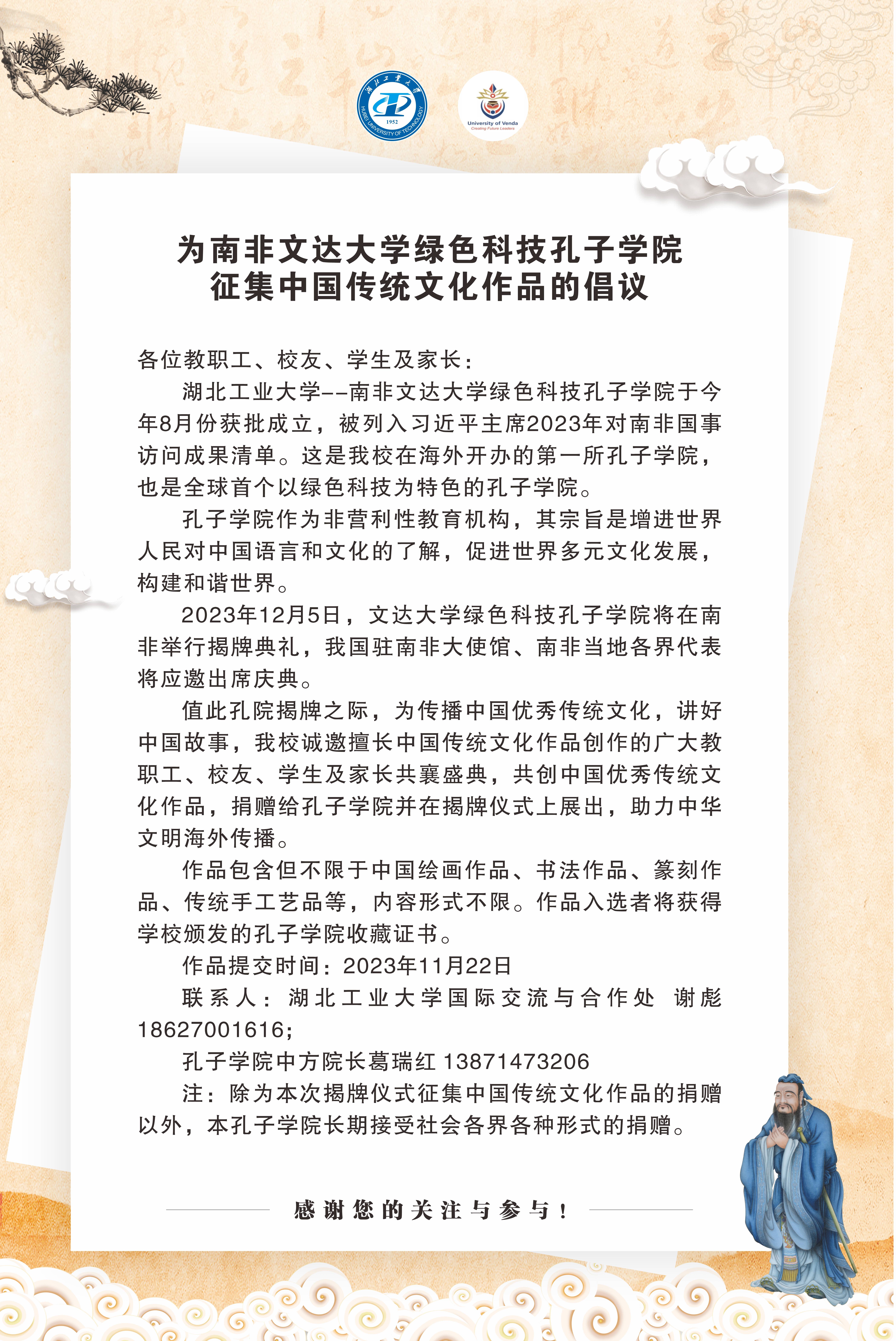 为bat365在线平台登录-南非文达大学绿色科技孔子学院捐赠中国传统文化作品的倡议