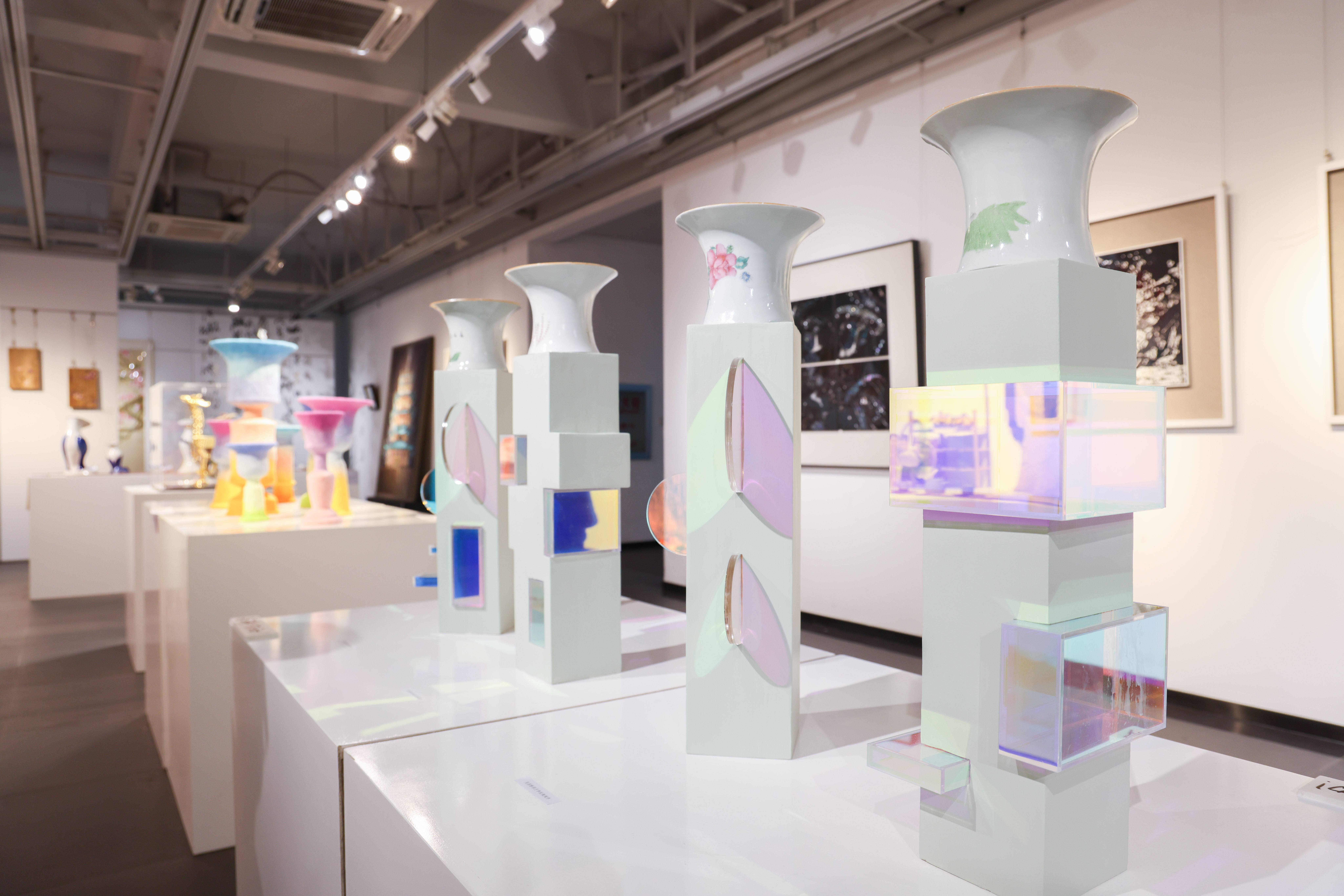 一缕缕青烟,从陶瓷罐子里飘出,萦绕在山形的银丝盖子上。作品“烟岚云岫”,是一组民国小盖罐艺术修复作品。作品作者、公共艺术专业张子琦介绍,这些香薰盒,原本是民国时期的脂粉盒、墨盒或者印泥盒,均是遗失盖子的瓷器。她用传统掐丝工艺,制作了山峦形状的银丝盖子,让残次品也焕发新生机。在灯光下,显得波光粼粼。