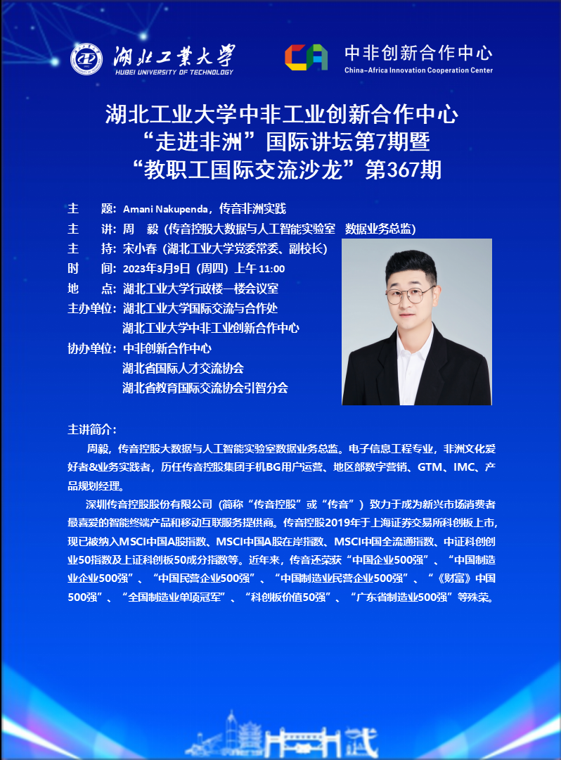 bat365在线平台登录中非工业创新合作中心“走进非洲”国际讲坛第7期暨第367期“教职工国际交流沙龙”