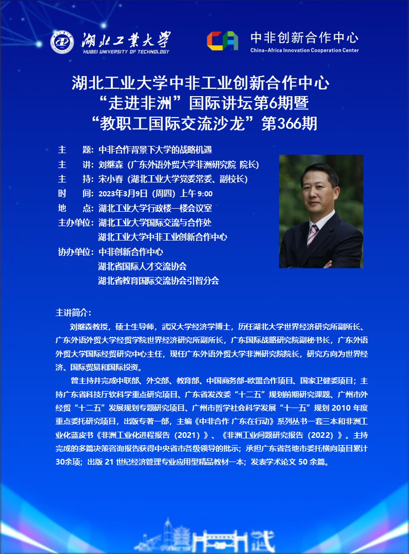 bat365在线平台登录中非工业创新合作中心“走进非洲”国际讲坛第6期暨第366期“教职工国际交流沙龙”
